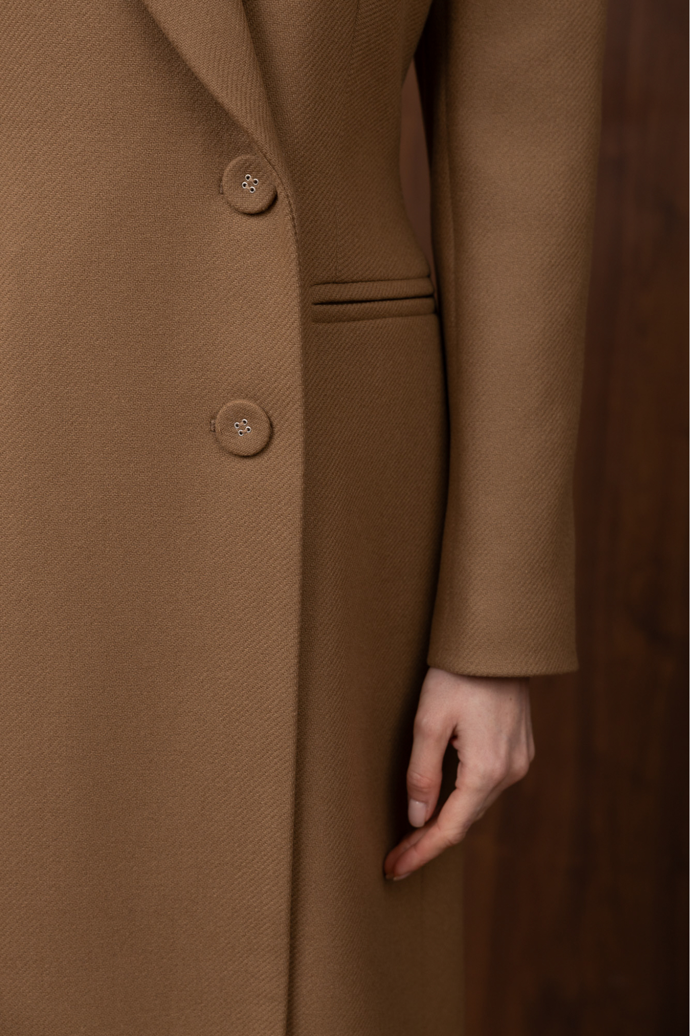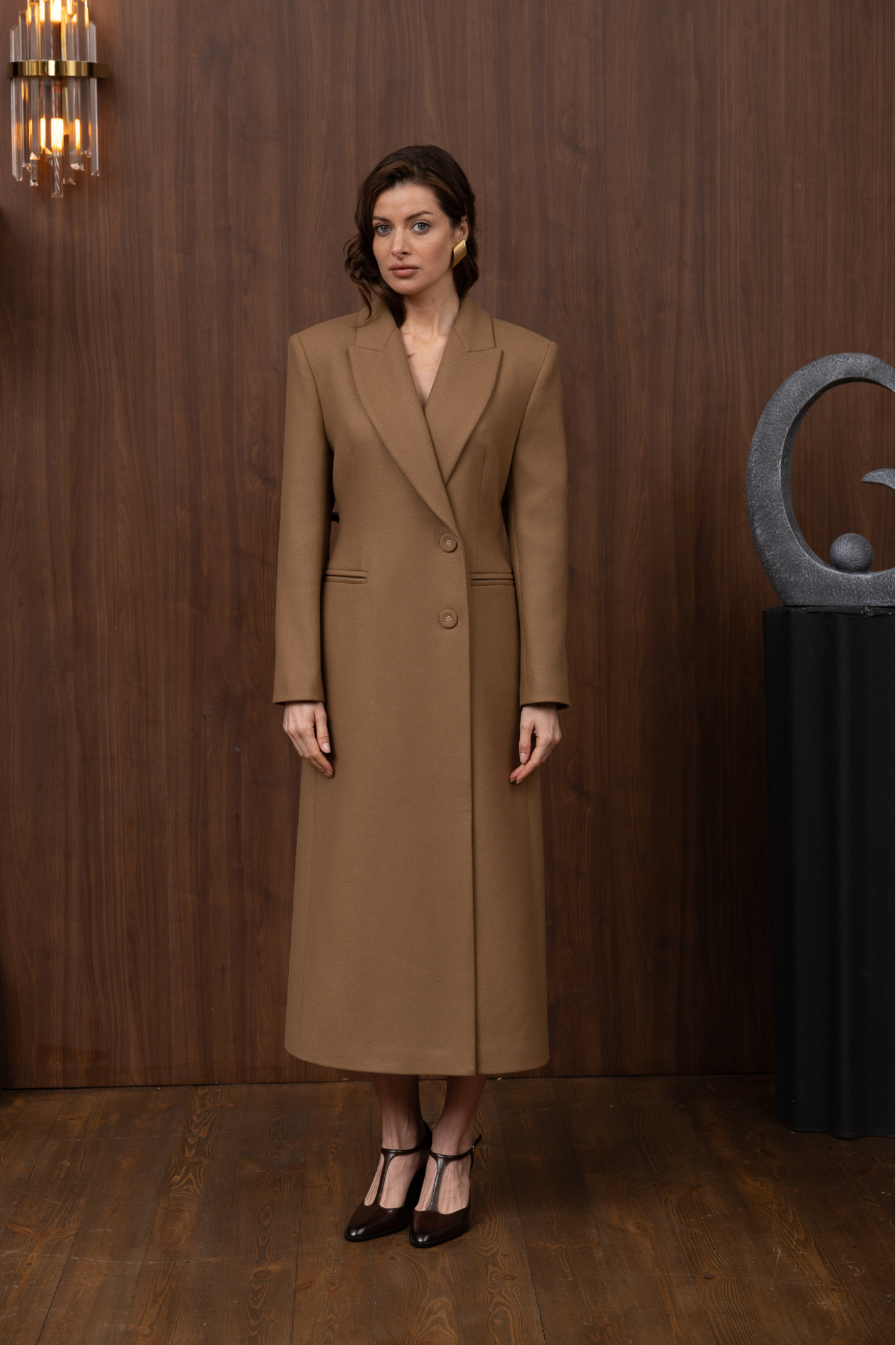Wonders Premium quality Italian wool coat. The model combines masculinity and femininity thanks to a clearly defined shoulder line and a pronounced waistline.
