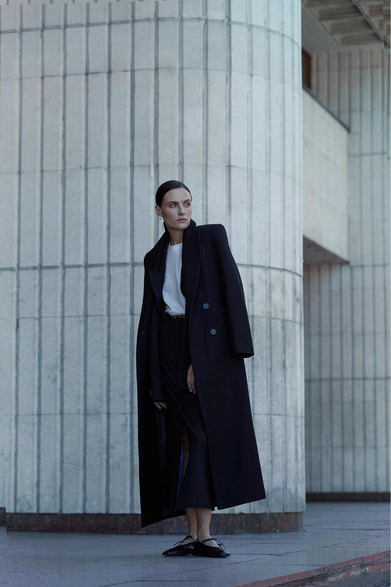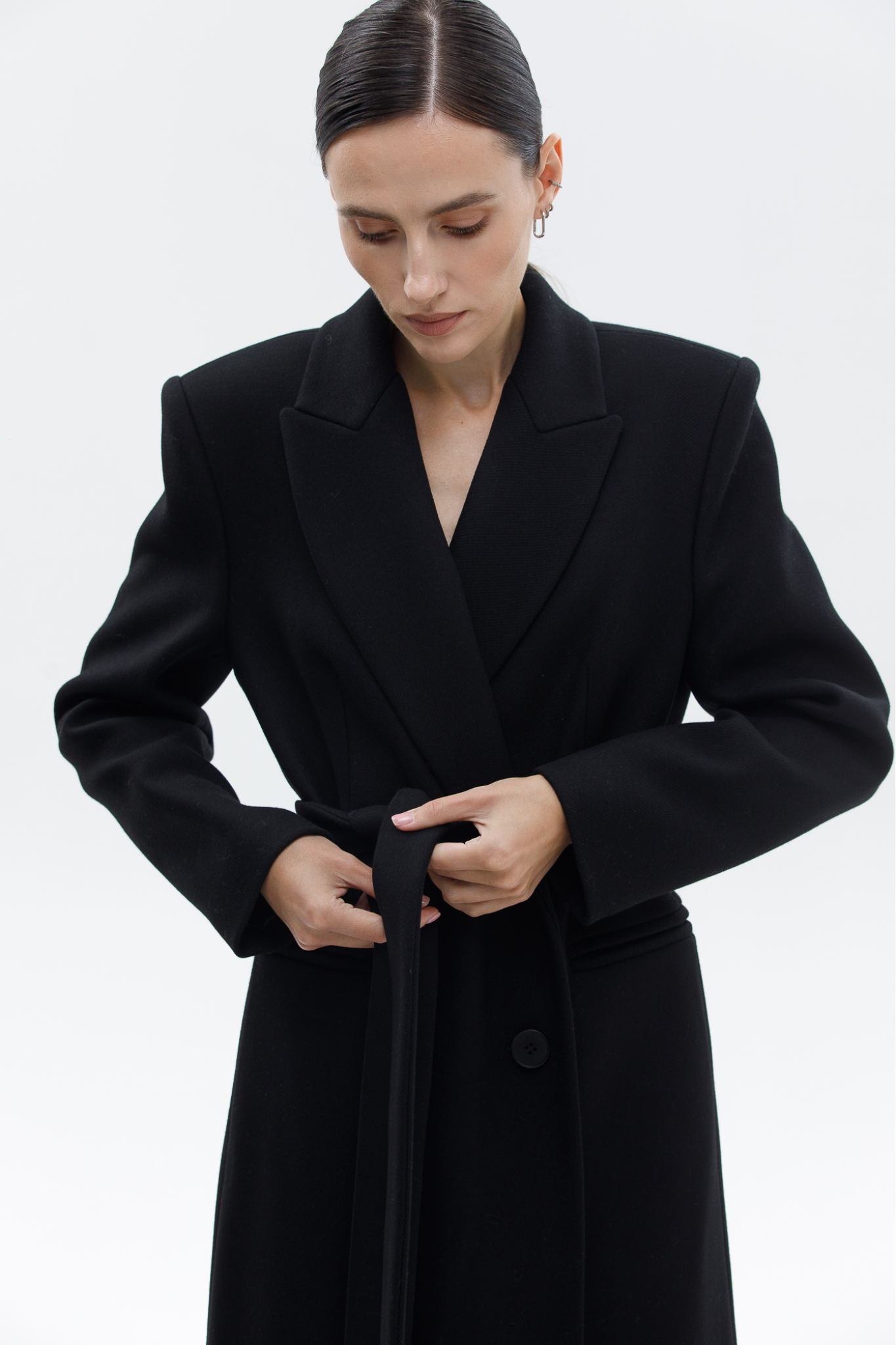 Wonders Premium quality Italian wool coat. The model combines masculinity and femininity thanks to a clearly defined shoulder line and a pronounced waistline.