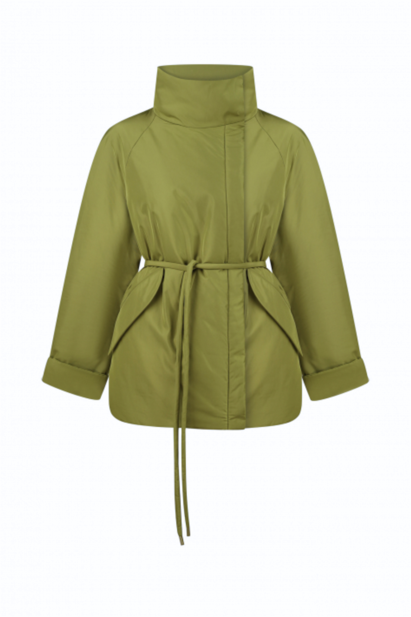 A short winter puffer jacket crafted from water-repellent fabric. Designed with a high stand collar, flap pockets, and an adjustable drawstring hem that allows the silhouette to shift from straight to a bomber shape. Features a soft velvet insert on the inside of the collar. Comes with a slim belt for a subtle, minimalist waist accent.
