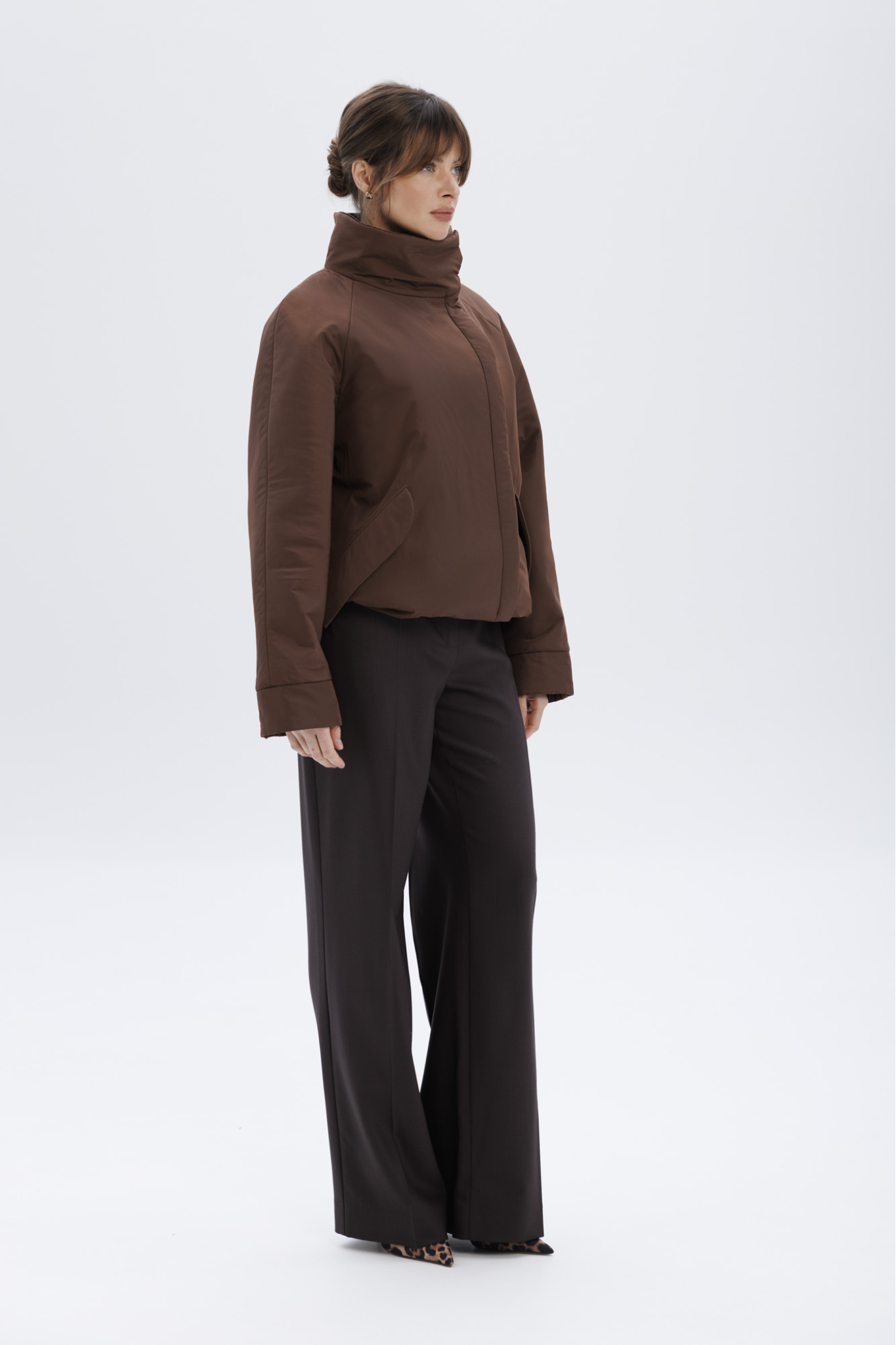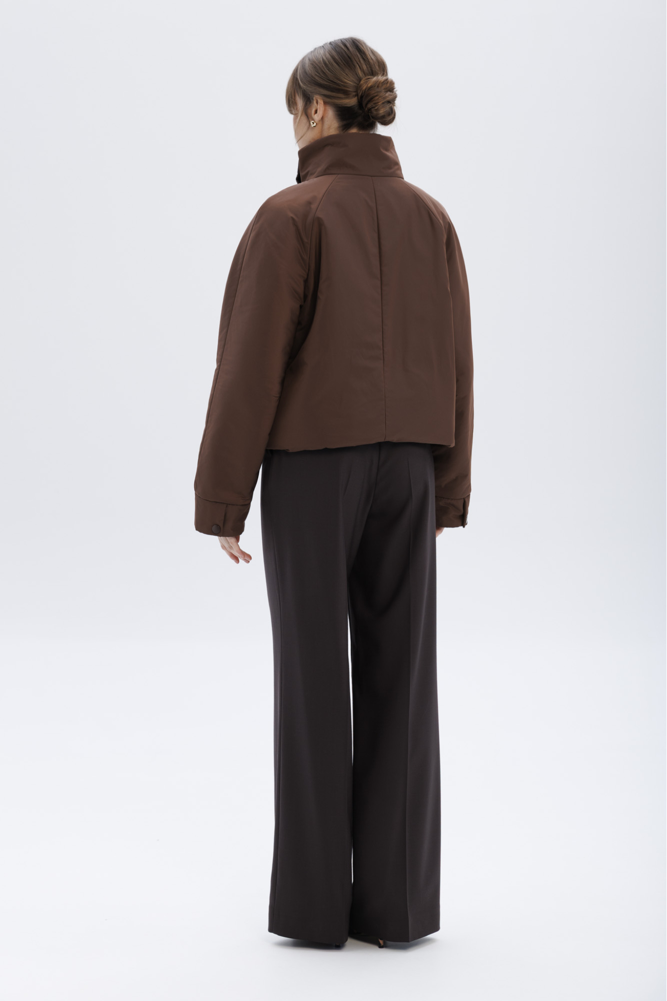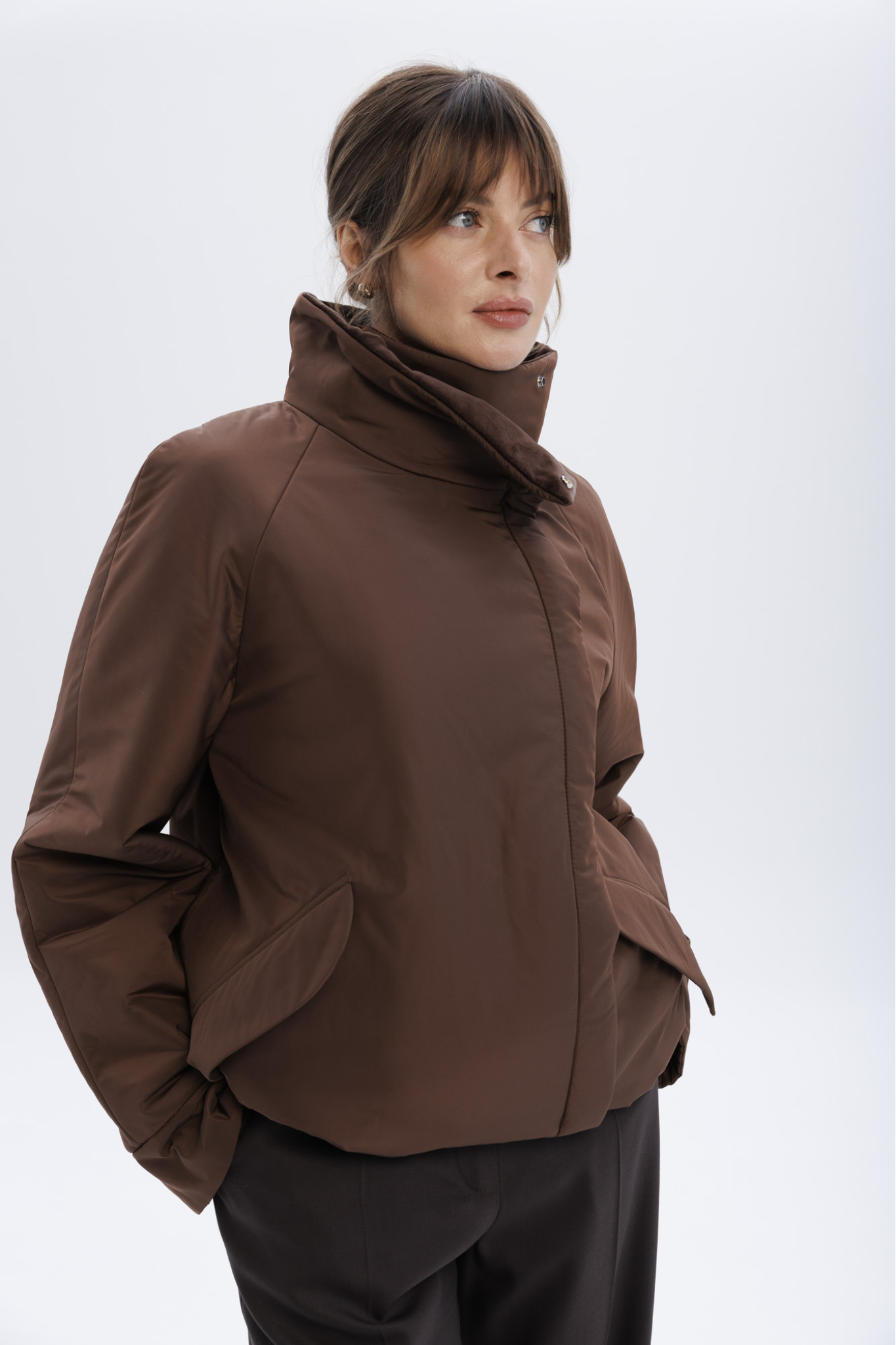 Пуховик с воротником-стойкой укороченный, шоколадный