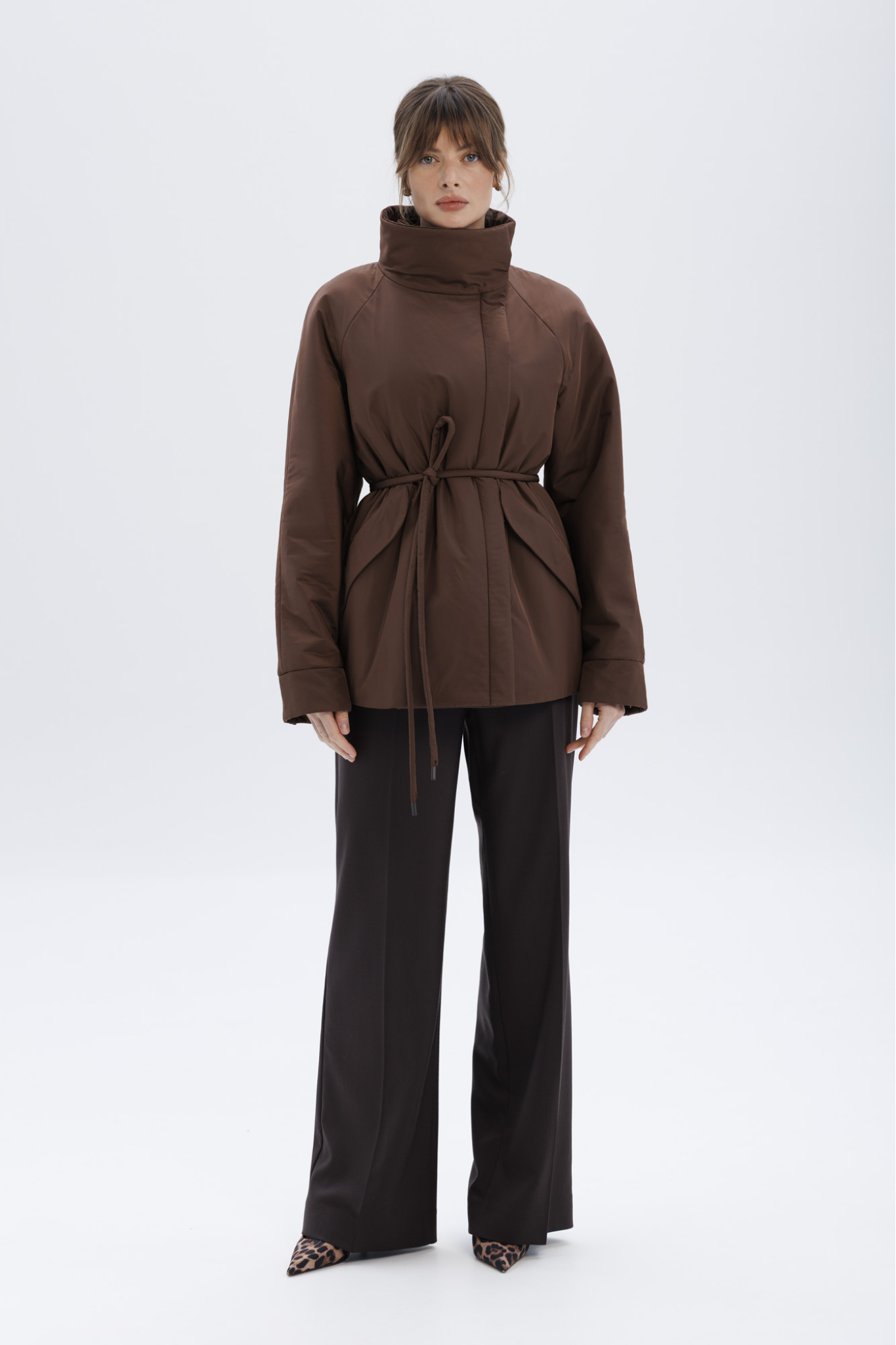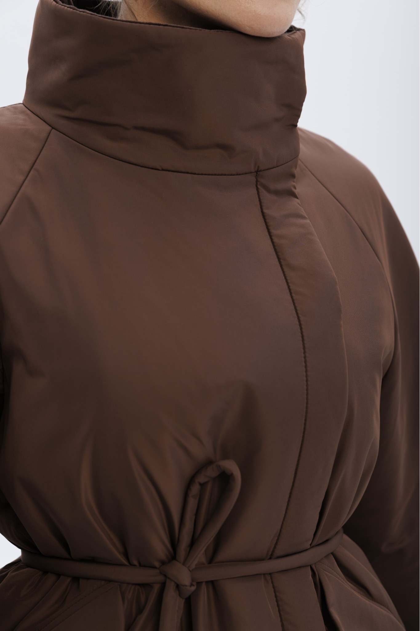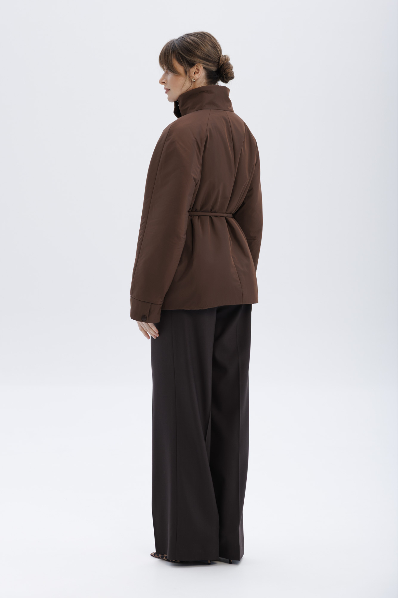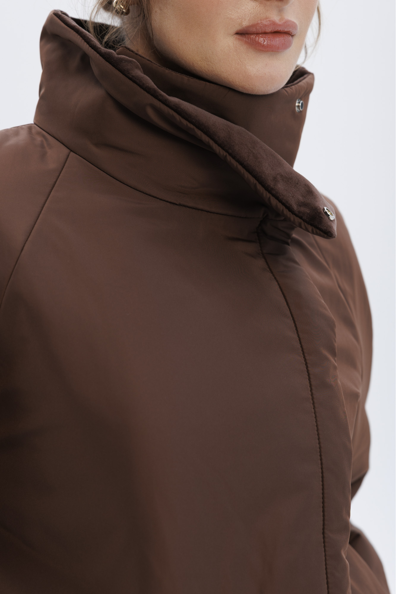 Пуховик с воротником-стойкой укороченный, шоколадный